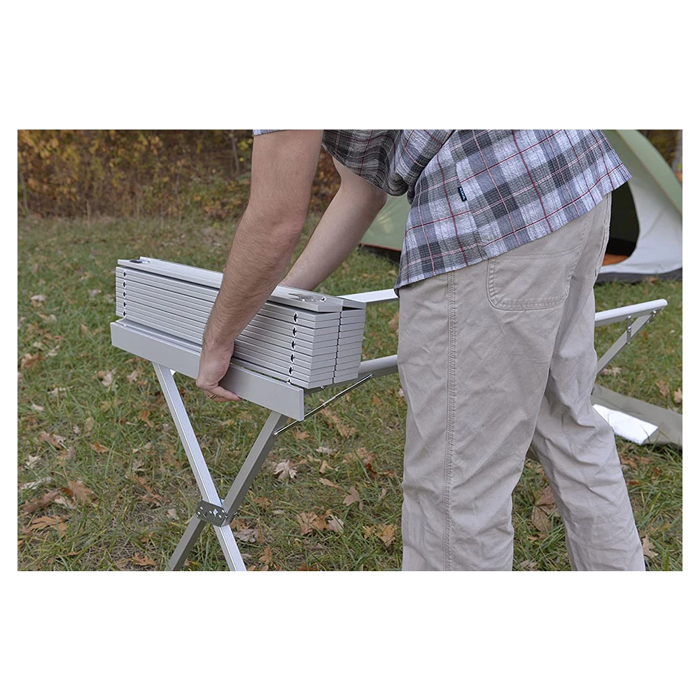 Whether you’re playing cards or eating dinner, the ALPS dining table is sure to be a hit! On your next outing, take one of these tables along and make your event even more enjoyable. This easy-to-use folding table is great for camping, backyard barbecues, holiday get-togethers, and tailgating. Made with a sturdy aluminum X-frame and fold-up top, the table sets up easily and is designed with no interfering side supports so chairs can move up close. You can comfortably sit up to the table without worrying about hitting your knees on the side supports. When the party’s over, the tabletop and frame collapse quickly and slide easily into a convenient shoulder carry bag for compact storage or transport. As durable, sturdy, and lightweight as this table is, it’s easy to see why it is a top seller!