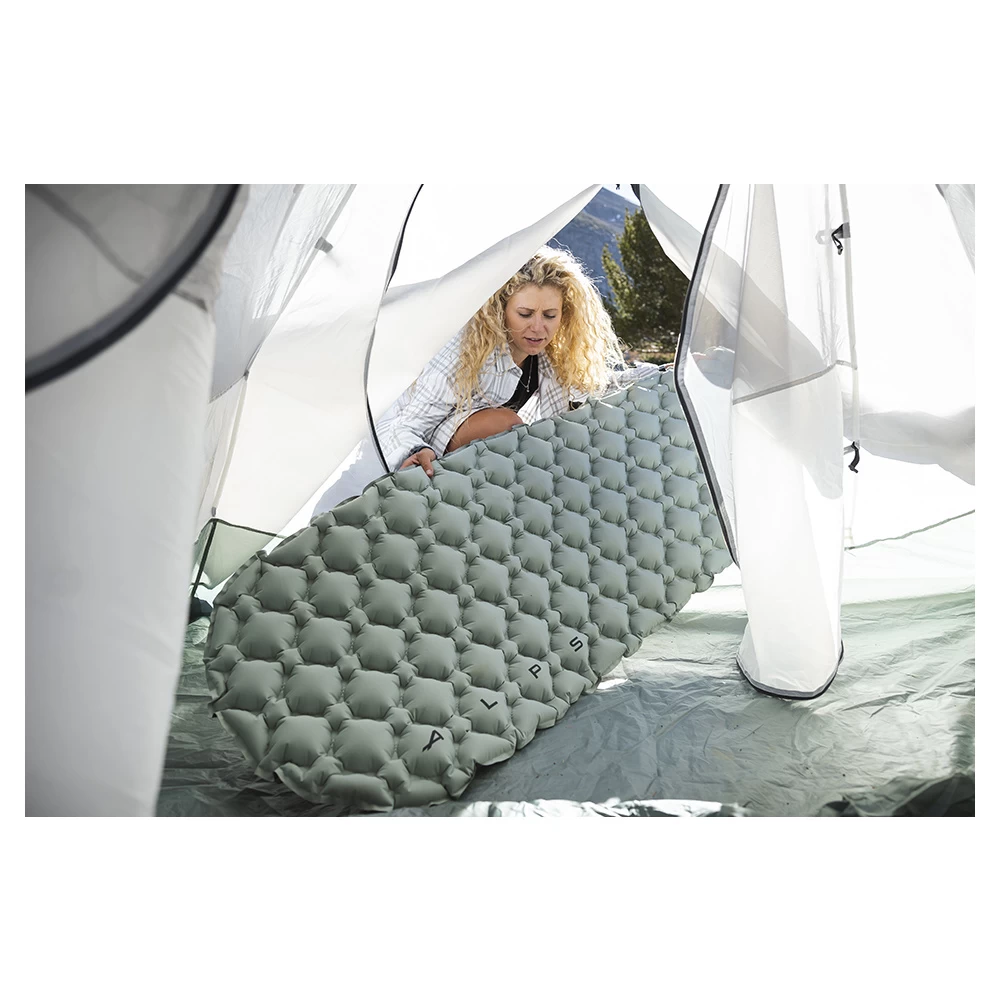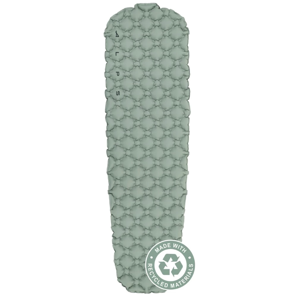 The Flicker by ALPS Mountaineering is a lightweight environment-friendly inflatable pad made from recycled material. The recycled 30D polyester material and small pillow-like air chambers provide support and comfort. The flat valve allows quick inflation and deflation. This extremely lightweight mat includes a stuff sack and repair kit and measures 75” X 22” X 2” and weighs only 1 lb.
