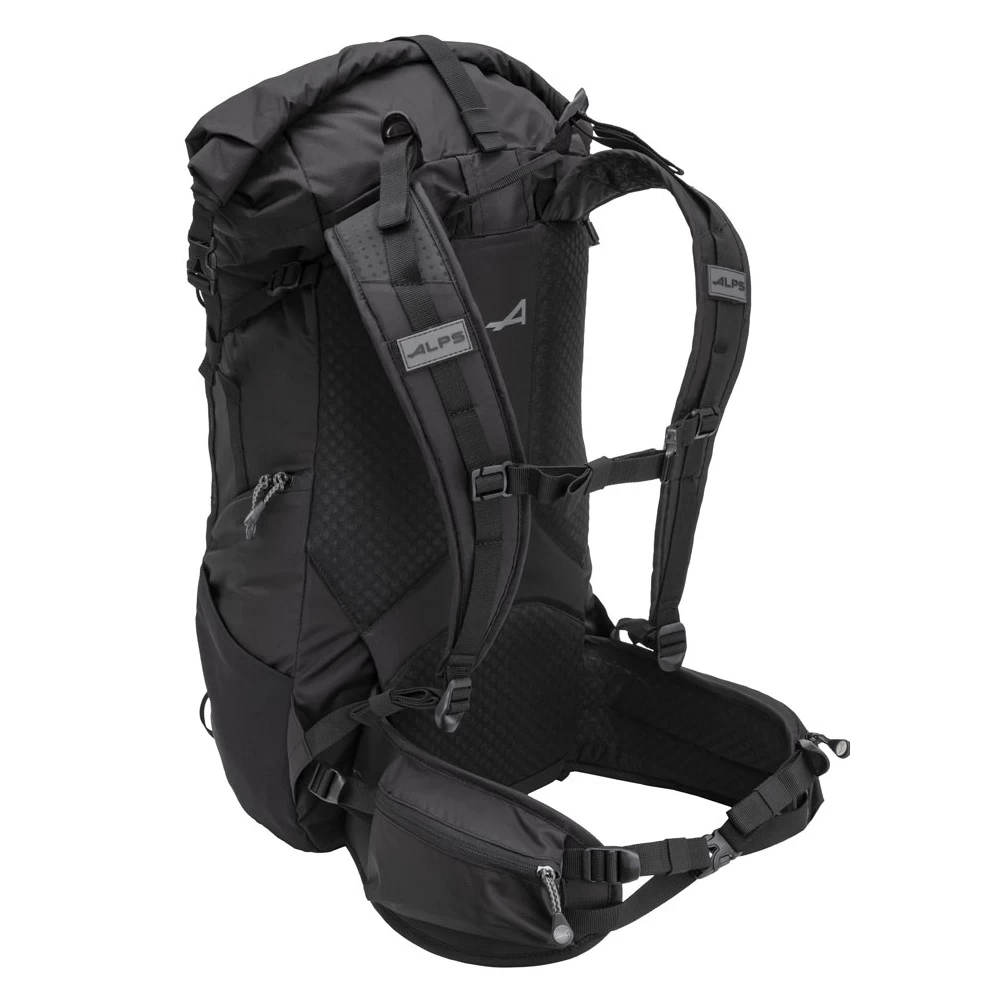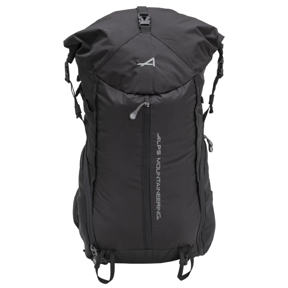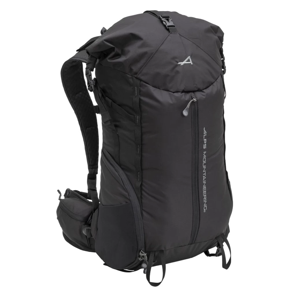 The ALPS Mountaineering Tour boasts a roll top design which allows the pack volume to easily expand from 35L to 45L. Its lightweight 200D nylon double ripstop fabrics with 3D mesh suspension and aluminum stay provide a comfortable fit and carry. If you prefer no waist belt on a particular outing, the waist belt can quickly and easily be removed. The large main compartment, hip belt pockets and zippered lid pocket give the Peak 45 a total of 2,135–2,746 cubic inches of storage. With the Tour there is no need to dig out all the contents of your pack to get to the bottom; two strategically-placed side zippers provide additional access to the main compartment. A front zipper pocket, stretch side pockets, side and bottom compression straps, and trekking pole loops provide additional gear storage and lashing points. A hydration port with pocket and built-in rain cover are both included making the Tour a truly versatile pack.