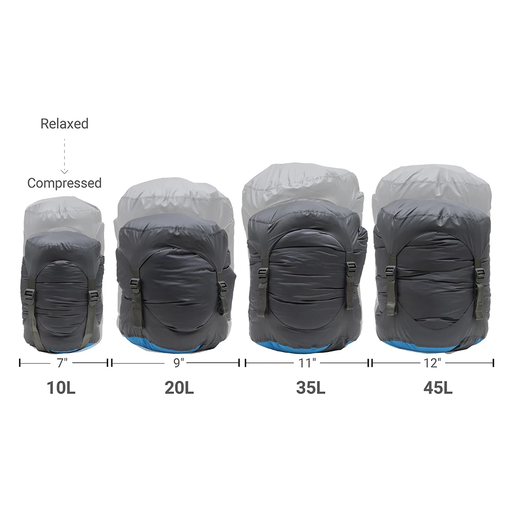 The Dry Sack is a compression stuff sack that features Air Control. Air control is a waterproof air permeable fabric, which allows you to compress the air out and doesn’t let water in. This high-tech fabric gives you the ability to compress the contents while maintaining its waterproof integrity fully. The Dry Sack is the perfect compression stuff sack for wet environments (not submersible).
