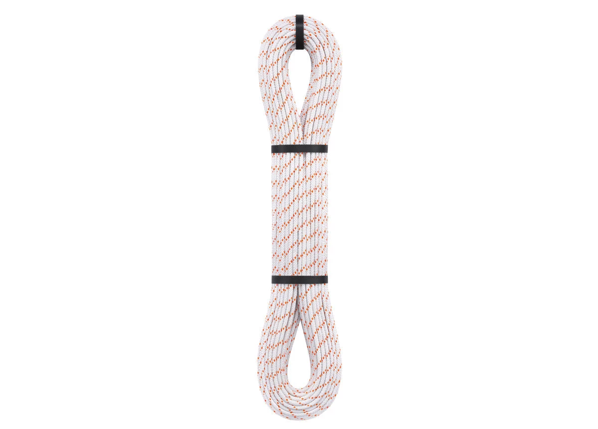 This is a highly specialized extremely lightweight and durable hyperstatic cord designed for retrieving a single lead climbing rope after a rappel or for hauling a pack. The sheath is textured to allow for better grip ability. Made with high-modulus polyethylene for extreme abrasion resistance. Works with most Petzl ascenders and progress-capture pulleys. Its more rigid construction make it easier to throw while setting up for rappels.  This is not to be used as a lead climbing rope. This is not to be used for rappelling on directly, but instead it is designed to be tied through a sold rappel anchor to a lead climbing rope and then used purely as a “pull-down” cord to be able to retrieve a single lead climbing rope after completing a rappel. Not to be run through a belay/rappel device.