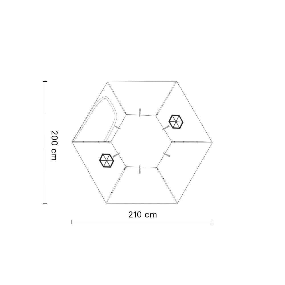 Floor size: 2,100 mm x 2,000 mm (83 in x 79 in)